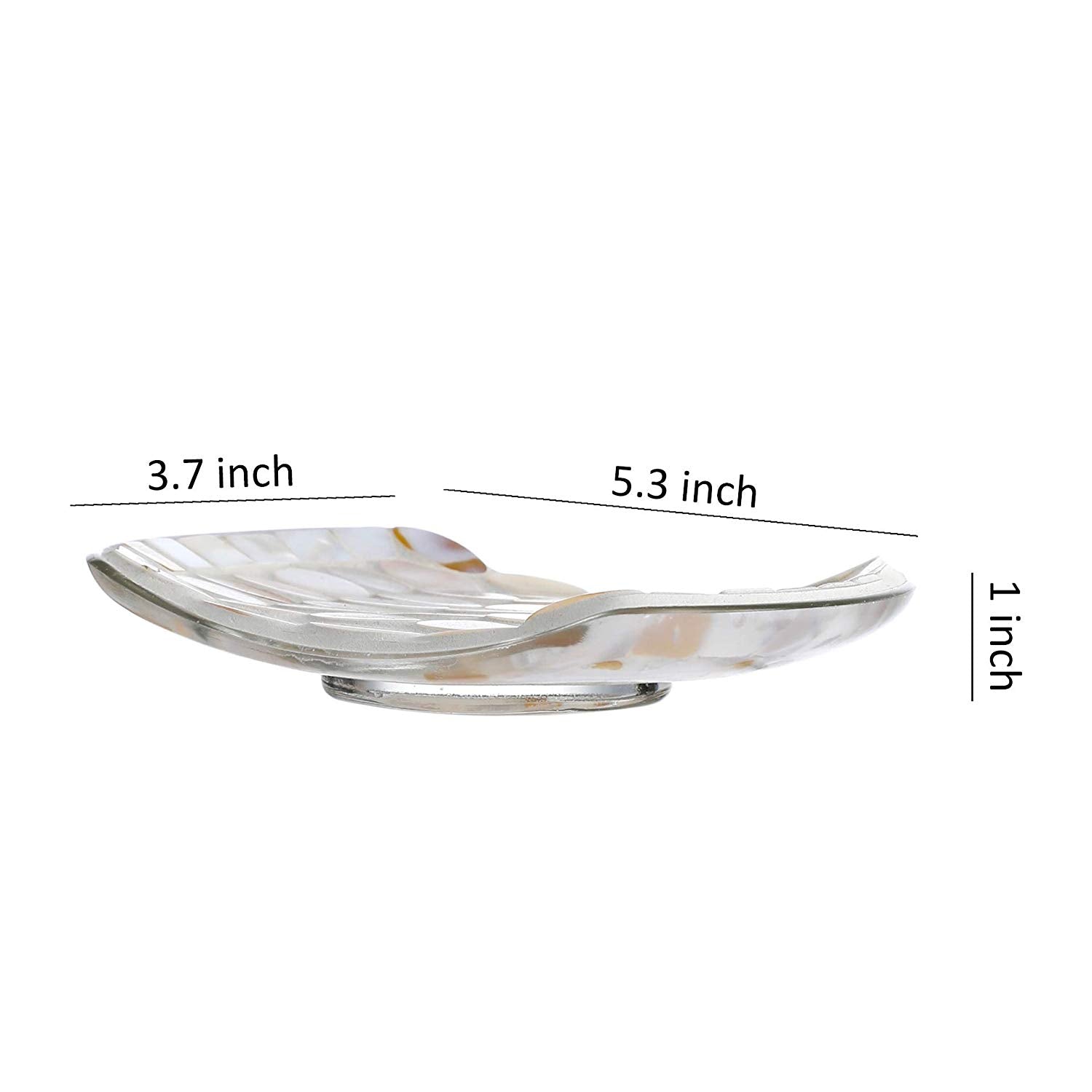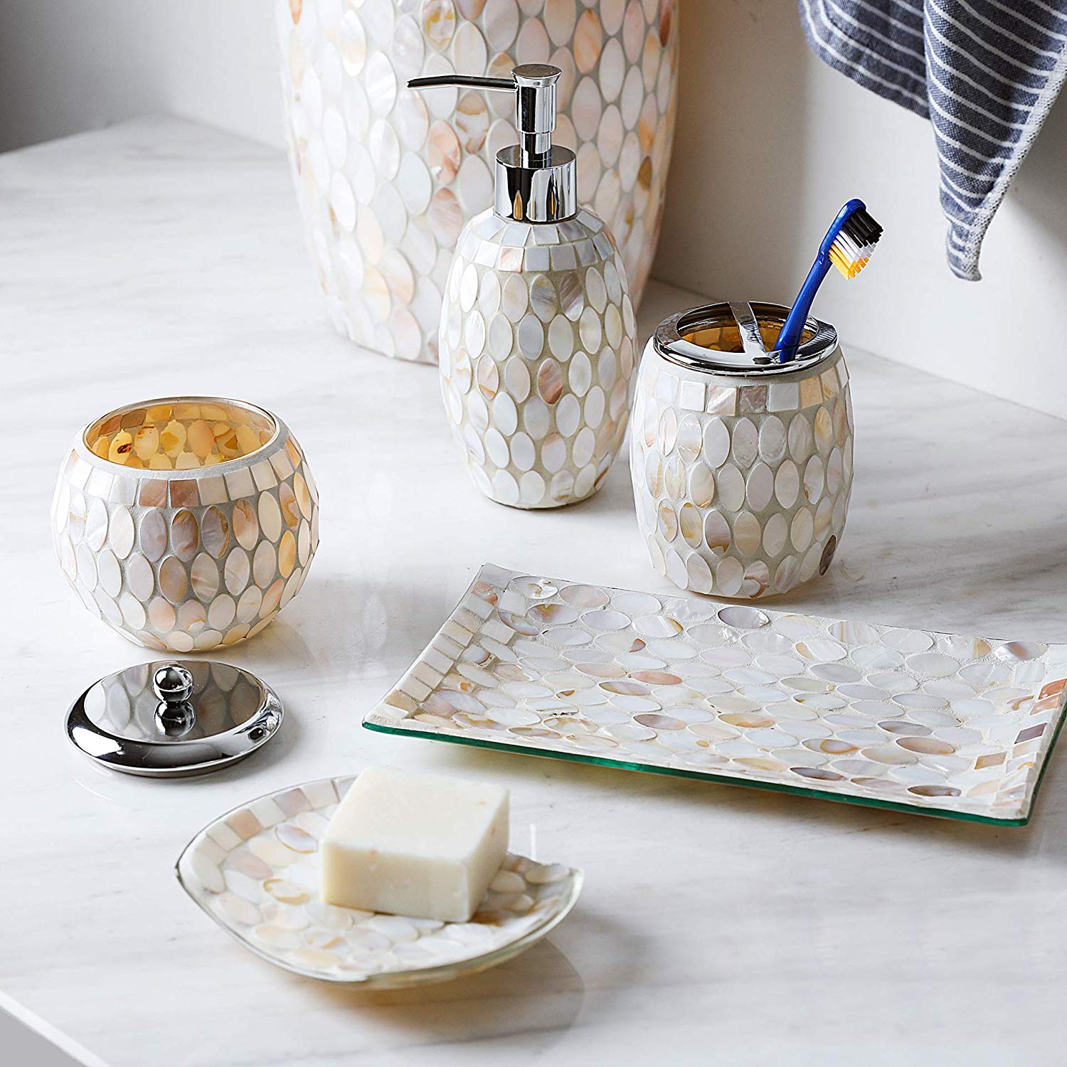 Nature Shell Bathroom Accessories Sets 4 Pcs | Luxurious Glass Soap Dispenser Toothbrush Holder Cotton Swab Jar Vanity Tray