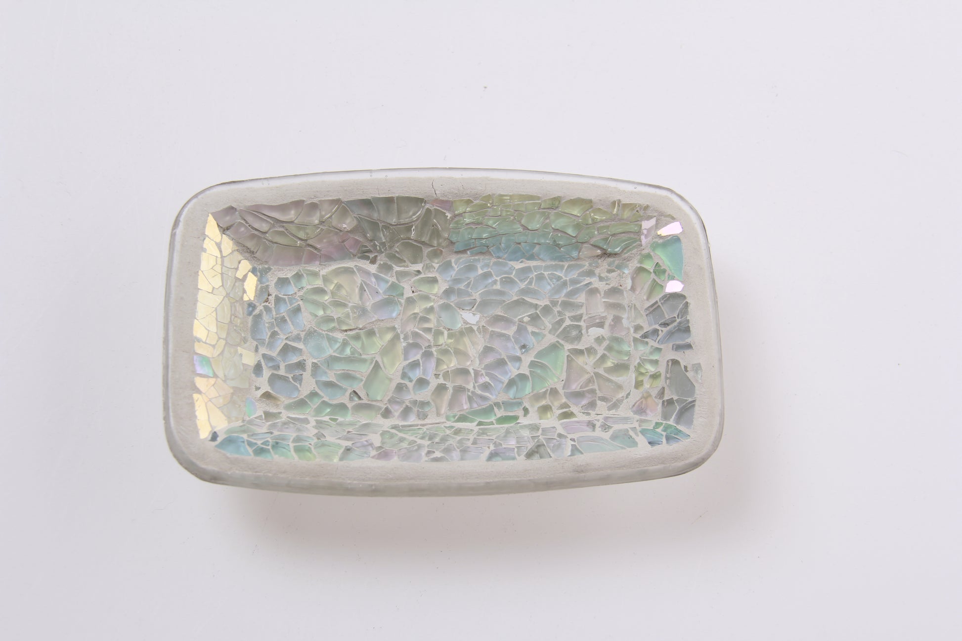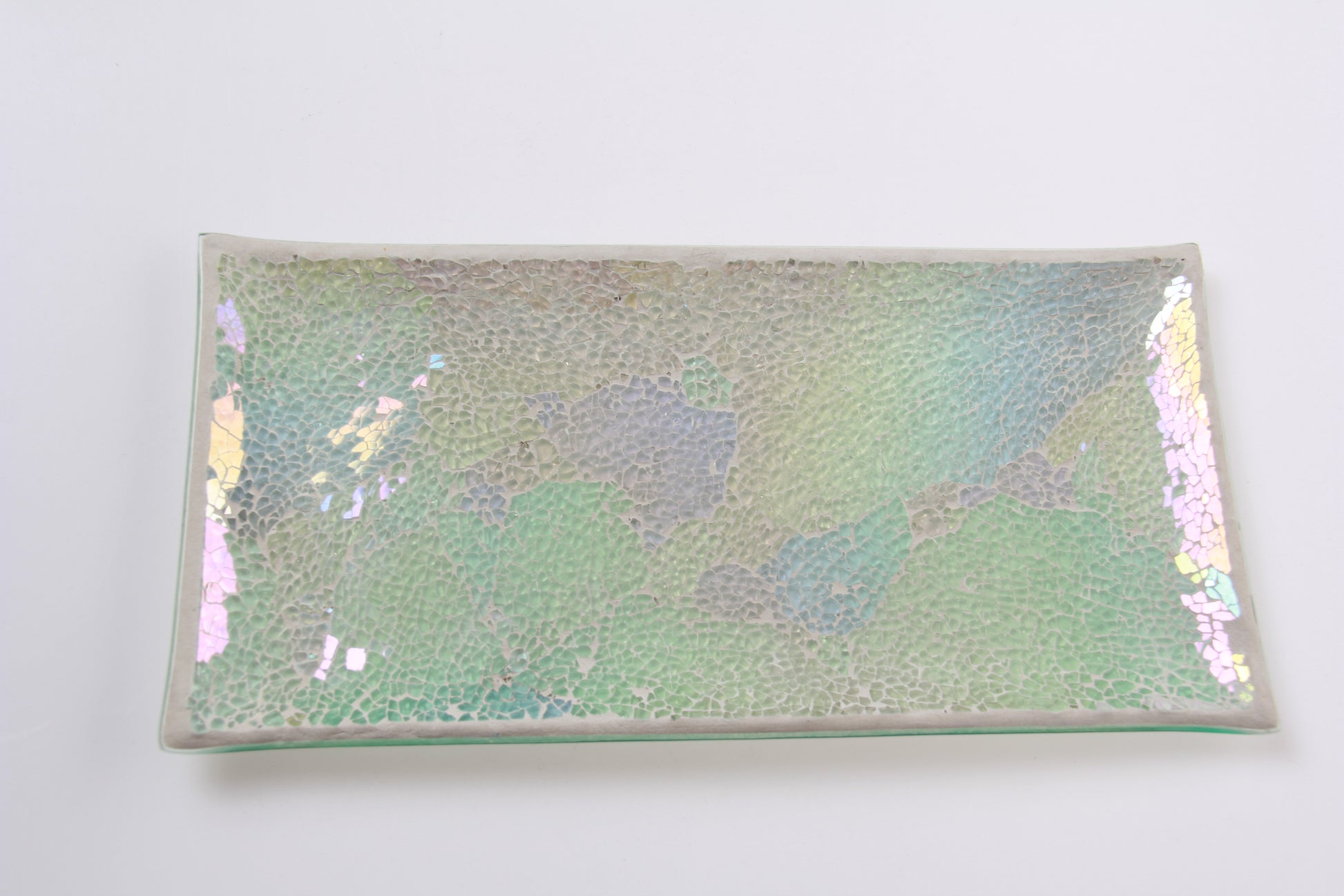 Each piece is individually handmade using small glass fragments arranged by skilled artisans, creating natural texture variations and a premium handcrafted feel.