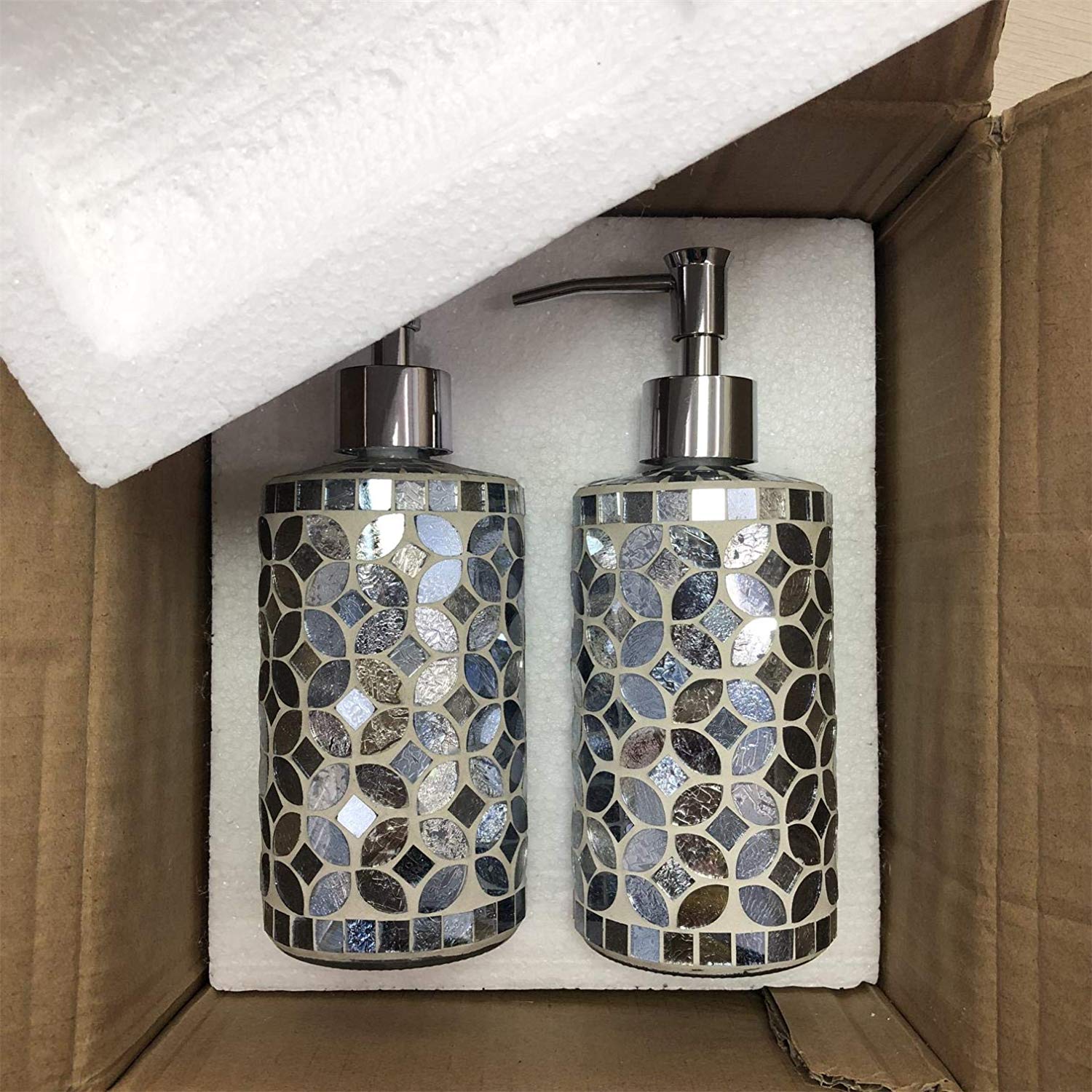Handmade Silver Glass Mosaic Soap Dispenser
